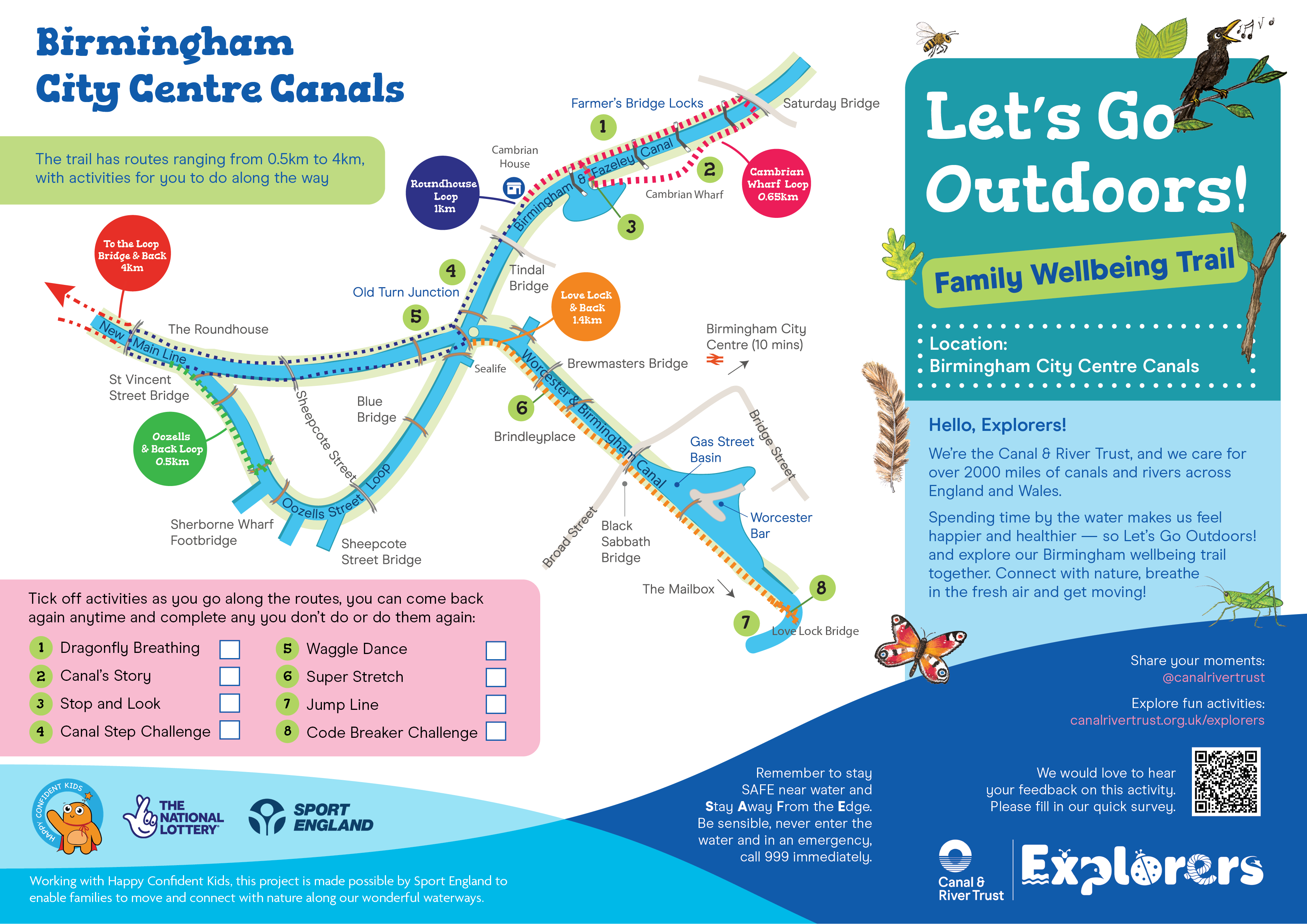 Crafting New Family Wellbeing Routes: We're currently busy developing family wellbeing routes at specific locations within targeted Sport England Areas. These aren't just paths; they're thoughtfully designed journeys aimed at encouraging physical activity, mindfulness, and a deeper connection with nature along the canals and rivers. Download Maps Here