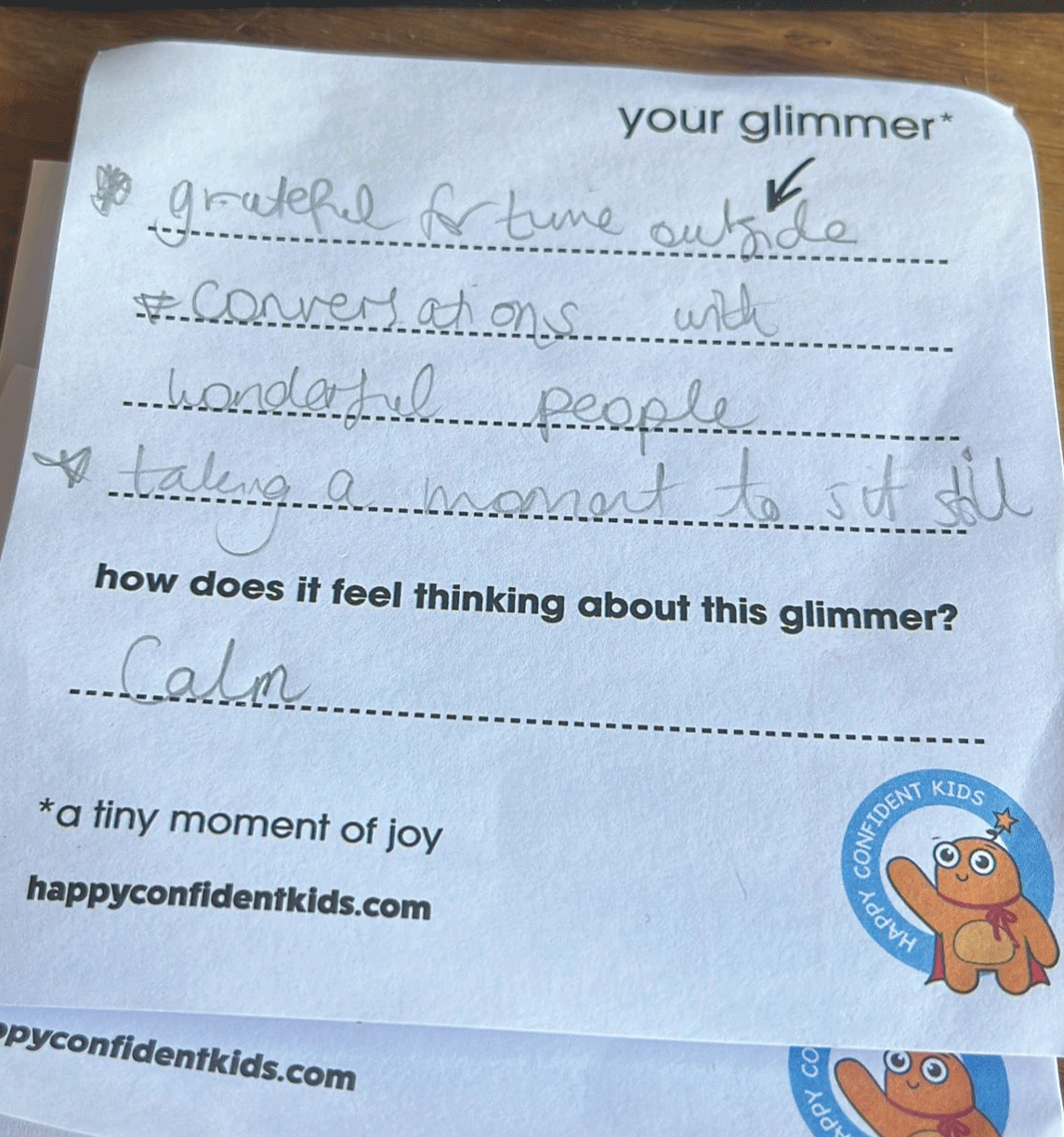 During a “glimmer seeker” training sessions a teacher fed back that “taking five” had completely changed how she felt, in just a week. She was much calmer, had more energy also saw a massive change in her children.