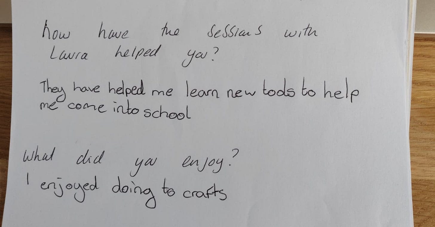 One of Coach Laura’s secondary school leaners is feeling much happier and calmer, and now consistently coming into school - go Laura!