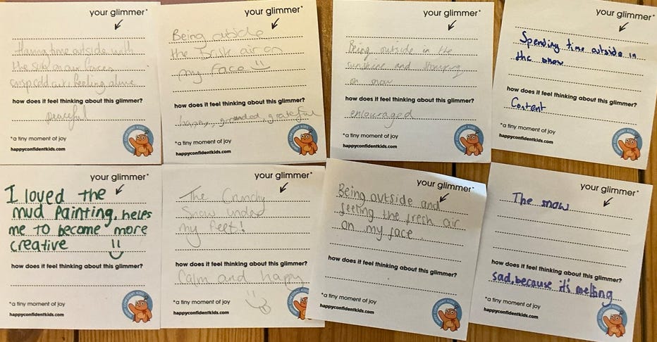 "I loved how peaceful it was and how kind the staff were. I have been using my glimmer book everyday since the Inset day with my family! It’s brought us altogether at the end of our days to share small moments of joy as one, it’s so nice to reflect on our days-despite if it wasn’t all joyful. Thank you for introducing me to glimmers!"
