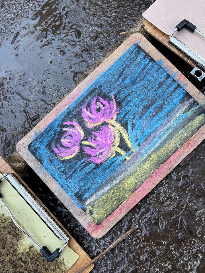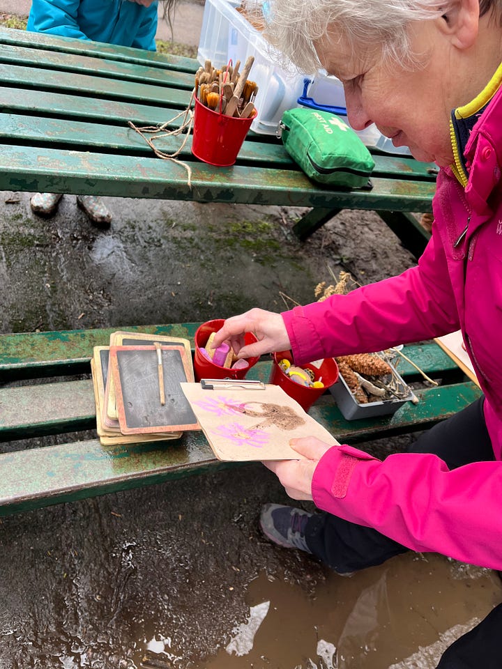 A Granny taking her time and loving doing the mud painting, seeing her have such joy in something so simple.