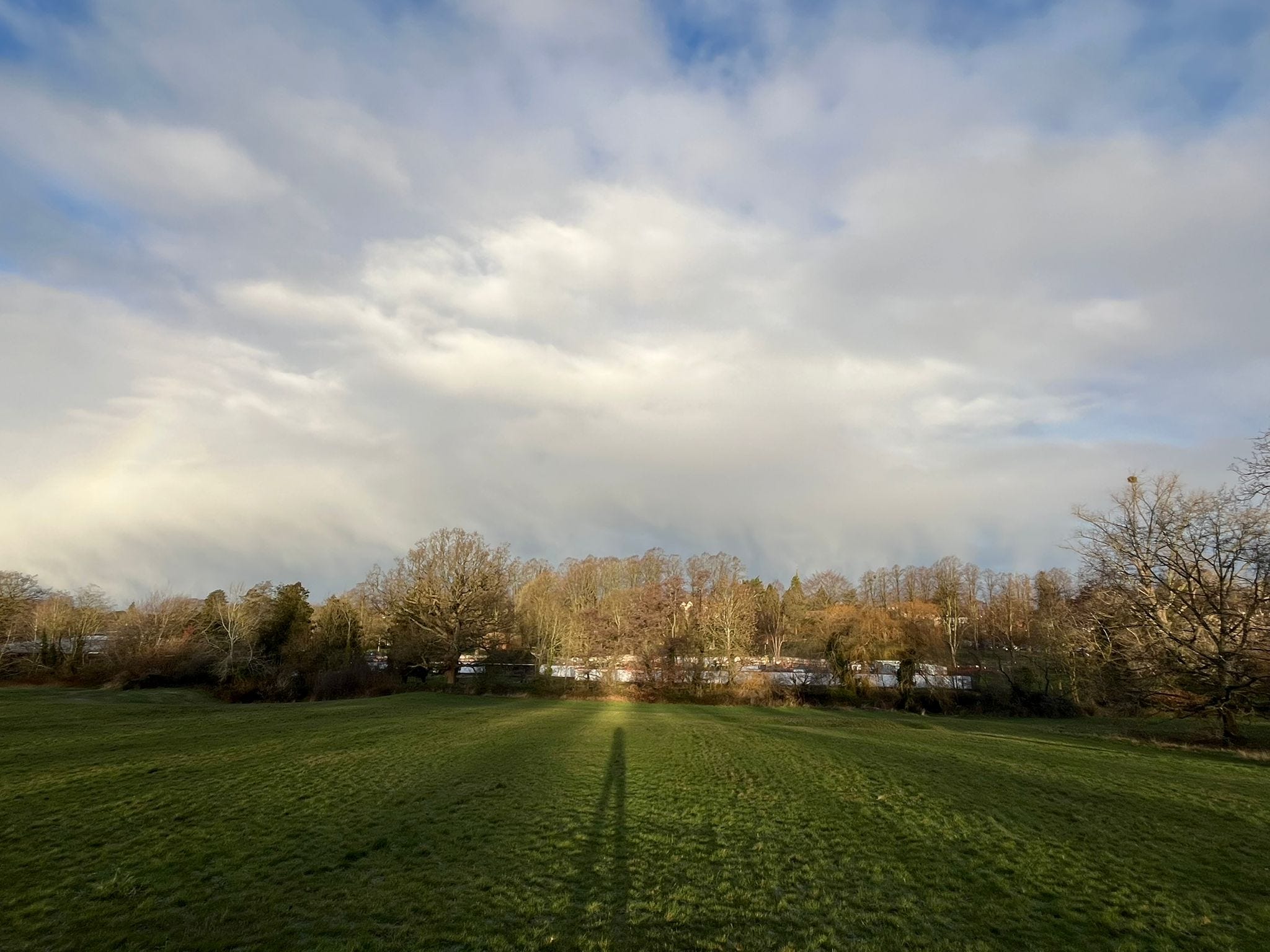 Earlier today, I was out walking and took a moment to just stop and “stretch my eyes” by looking into the distance. Out of the corner of my eye, I spotted a rainbow poking through the clouds (you can see it sneaking through on the left if you look carefully). If I hadn’t taken that moment, I would have missed it entirely. It was a beautiful reminder of why we need to look up.